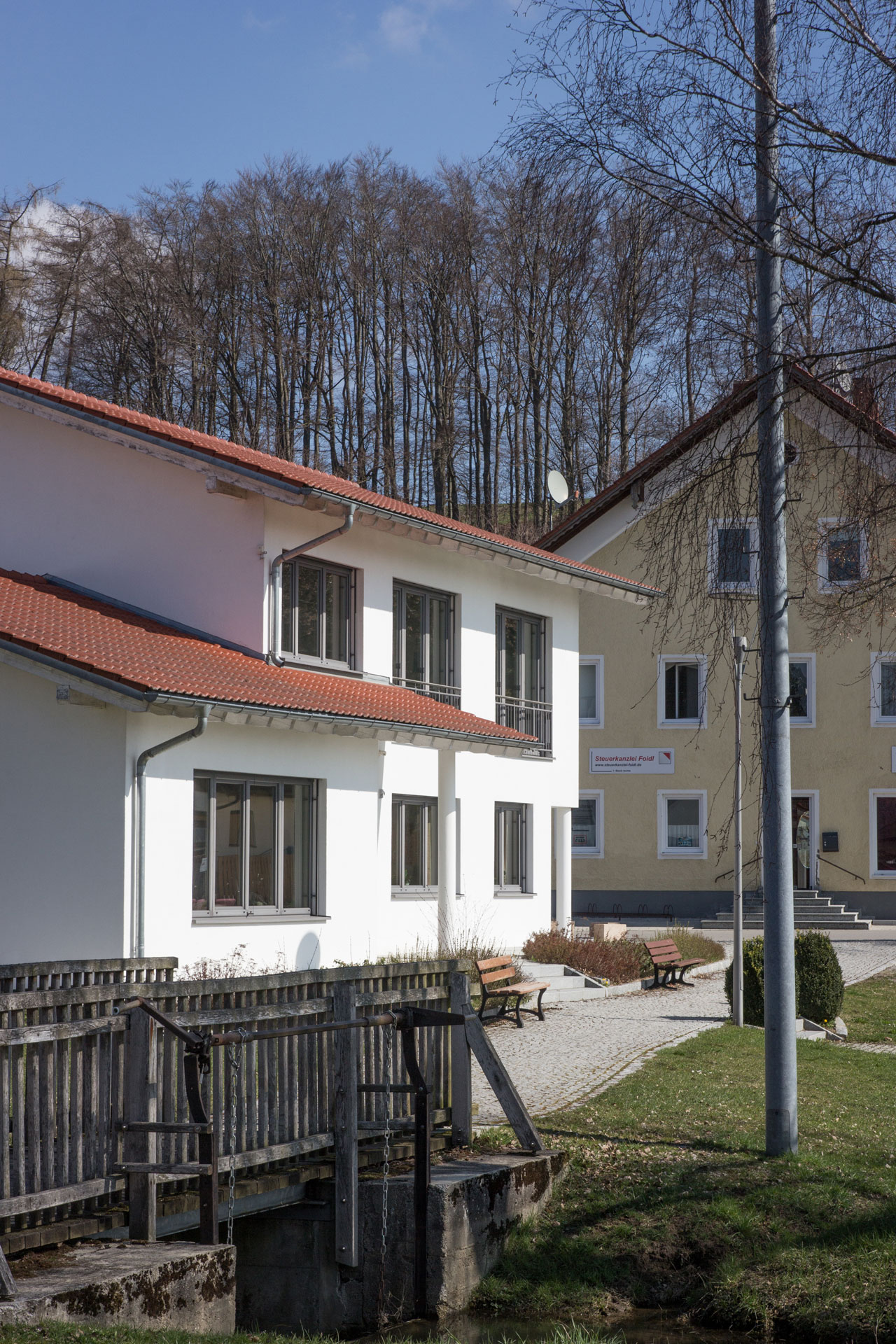 Das Gebäude liegt inmitten des Ortskerns von Bayerbach in unmittelbarer Nähe des Feuerwehrgerätehauses, des Bayerbacher Wirtshauses und des Volksfestplatzes. Das Gebäude ist im 90°-Winkel zum Feuerwehrgerätehaus angeordnet. Hierdurch wird der Feuerwehrausbildungsplatz auf der einen Seite vom Gebäude gefasst und klar definiert. Auf der gegenüberliegenden Seite präsentiert sich die Hauptansicht des Gebäudes markant entlang des Volksfestplatzes.